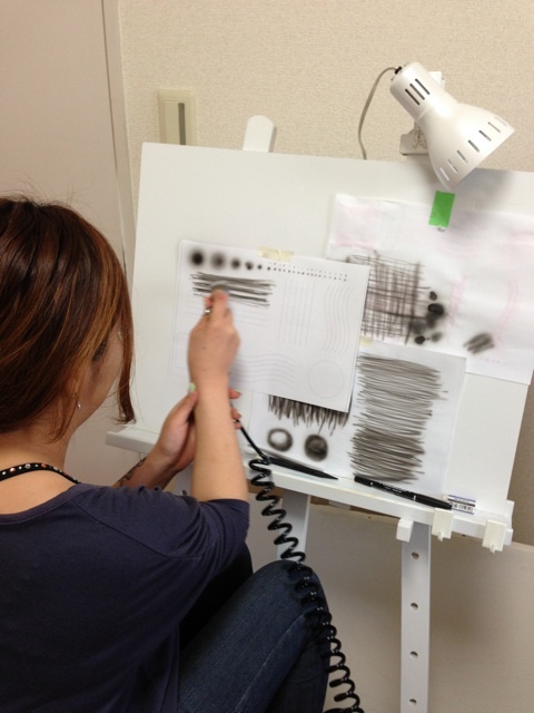 元々エアブラシは触っていた彼女なので、授業はスムーズで、予定より早く終わったため、基礎の練習を再びしました。