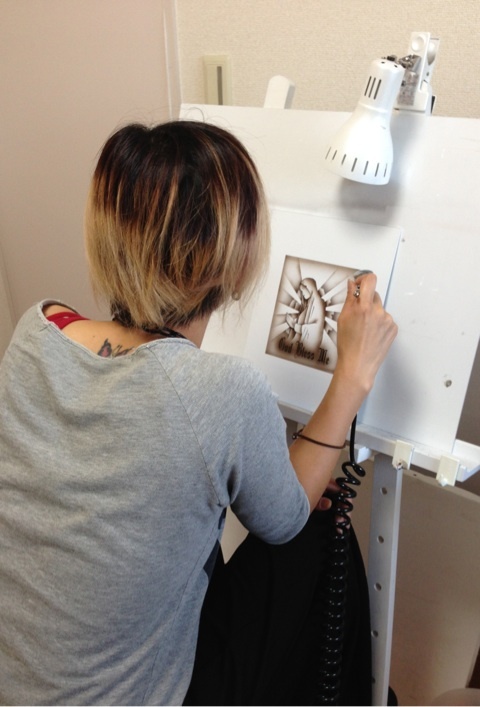 そしてサーフボードの制作の修業を得て、エアブラシを習いに来てくれました。