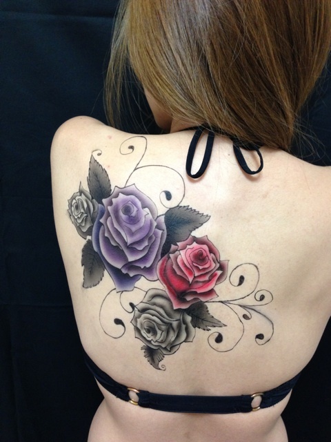 背中に薔薇♪